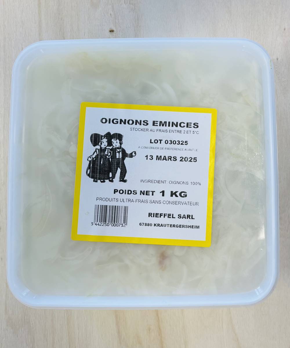 Oignons émincés frais 1KG - ATF Alsace Tartes Flambées Brumath proche Hoerdt Bas Rhin