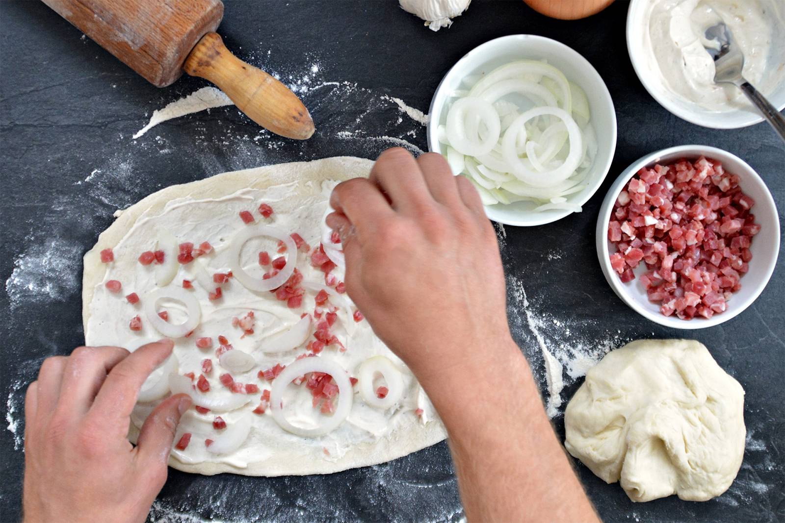 ATF vous propose une sélection d’ingrédients de qualité pour réussir vos tartes flambées avec un goût authentique. Retrouvez nos lardons frais ou surgelés, oignons émincés, emmental râpé et Munster, ainsi que nos préparations salées et sucrées prêtes à l’emploi.